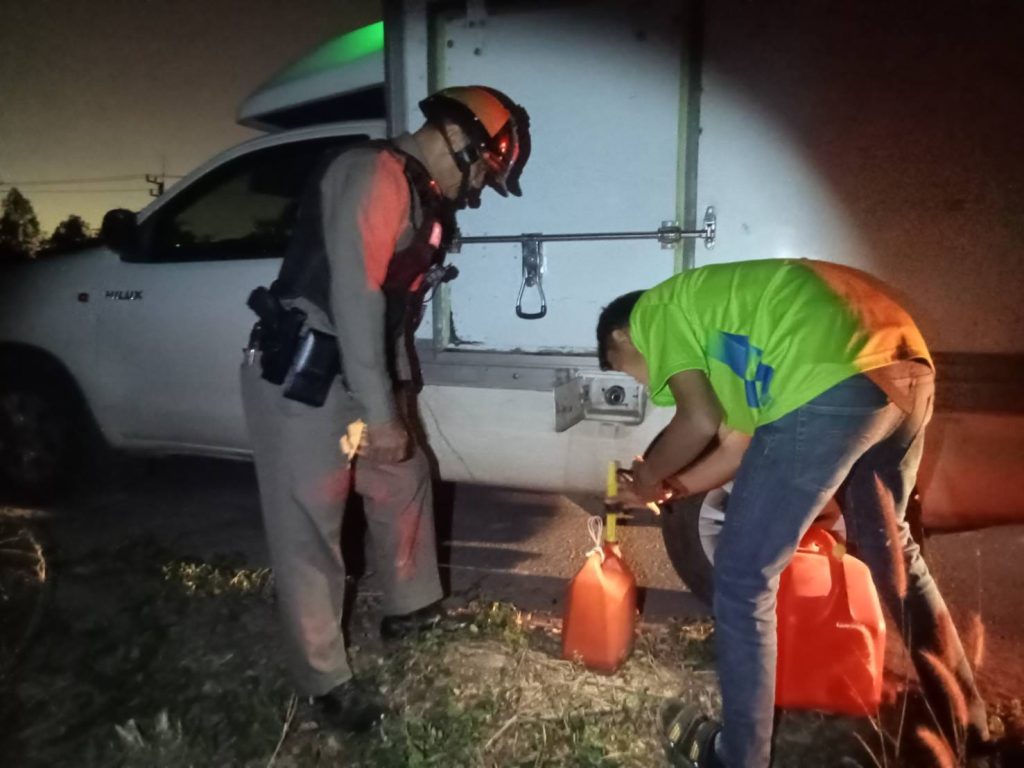 ข่าวประชาสัมพันธ์ ม.ค.67 (ช่วยเหลือประชาชน) 15 กันยายน 2565 โดย admin_patiu / ข่าวประชาสัมพันธ์,ข่าวฝากประชาสัมพันธ์ สภ.ป่าติ้ว ภ.จว.ยโสธร เมื่อวันที่ 20 มกราคม 2567 เวลา 18.10 น. **ภายใต้การอำนวยการสั่งการของ** พ.ต.อ.ชวภณ จันทเมนชัย ผกก.สภ.ป่าติ้ว พ.ต.ท.พนม สระน้ำคำ รอง ผกก.ป.สภ.ป่าติ้ว พ.ต.ต.สำฤทธิ์ ศรีเดช สวป.สภ.ป่าติ้ว รับแจ้งจากศูนย์วิทยุ สภ.ป่าติ้วป่าติ้ว เหตุขอความช่วยเหลือ รถยนต์น้ำมันหมด บริเวณถนนอรุณประเสริฐ บ.นิคม ต.กระจาย อ.ป่าติ้ว ฯ ร.ต.อ.จิตฐพล ธิมาชัย รอง สวป/20 สายฟ้า ออก ว.4 ให้ความช่วยเติมน้ำมันจนสามารถเดินทางไปต่อได้แล้ว #ด้วยความปรารถนาดีจากข้าราชการตำรวจสถานีตำรวจภูธรป่าติ้วทุกนาย #สถานีตำรวจภูธรป่าติ้ว !!!เหตุด่วนเหตุร้าย!!! โทร:191 หรือ 045-795-063 FB:สถานีตำรวจภูธรป่าติ้ว Facebook iconFacebookTwitter iconTwitterLINE iconLine