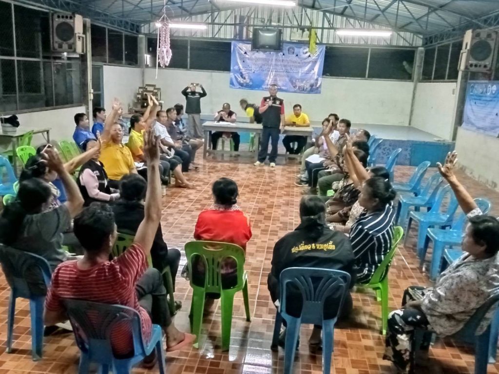 พร้อมด้วยชุดปฏิบัติการตำบลยั่งยืน สภ.ป่าติ้ว ร่วมกับ ผู้นำชุมชน ประธานคณะกรรมการคุ้ม บ.เชียงเพ็ง ม.1,7 ร่วมประชาคม กำหนดกติกา รวบรวมข้อปัญหาต่าง ๆ ในชุมชน/ตำบล เฟ้นหาผู้เสพ ตรวจสารเสพติด และรับประทานอาหารร่วมกันเพื่อประสานการปฏิบัติและสร้างความสามัคคี ณ ศาลาประชาคมบ้านเชียงเพ็ง หมู่ 7 ตำบลเชียงเพ็ง อำเภอป่าติ้ว จังหวัดยโสธร