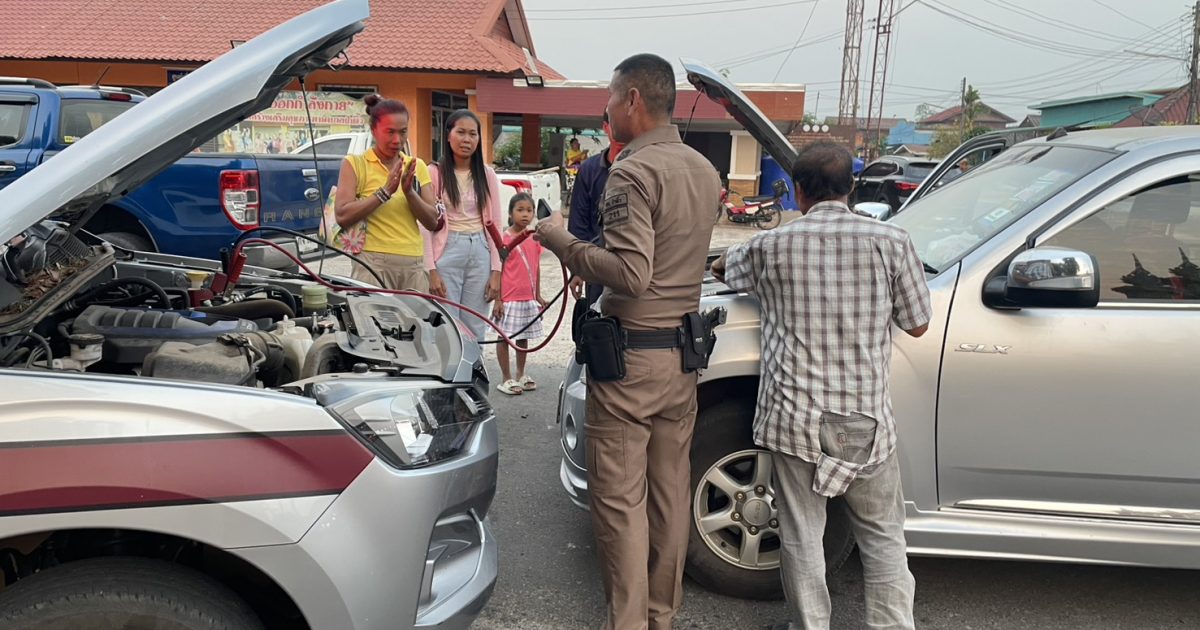 วันที่ 24 มี.ค.68 เวลา18.10 น. ร.ต.อ.วุฒิชัย นิสีดา รอง สวปฯ/20 พร้อม สายตรวจรถยนต์ ออกตรวจตลาดสดป่าติ้ว พบ ประชาชนมาขอความช่วยเหลือรถยนต์แบตหมด จึงได้ให้การช่วยเหลือพ่วงแบตรถยนต์ สามารถเดินทางต่อไปได้