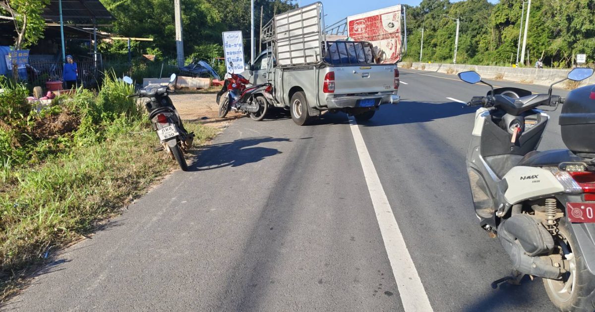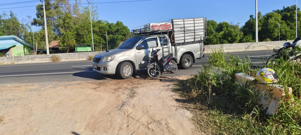 ออกตรวจที่เกิดเหตุ รถยนต์เฉี่ยวชนรถจักรยานยนต์ได้รับบาดเจ็บ ทรัพย์สินเสียหาย เหตุเกิดที่ ถนนทางเข้าบ้านเชียงเพ็ง ตำบลเชียงเพ็ง อำเภอป่าติ้ว จังหวัดยโสธร