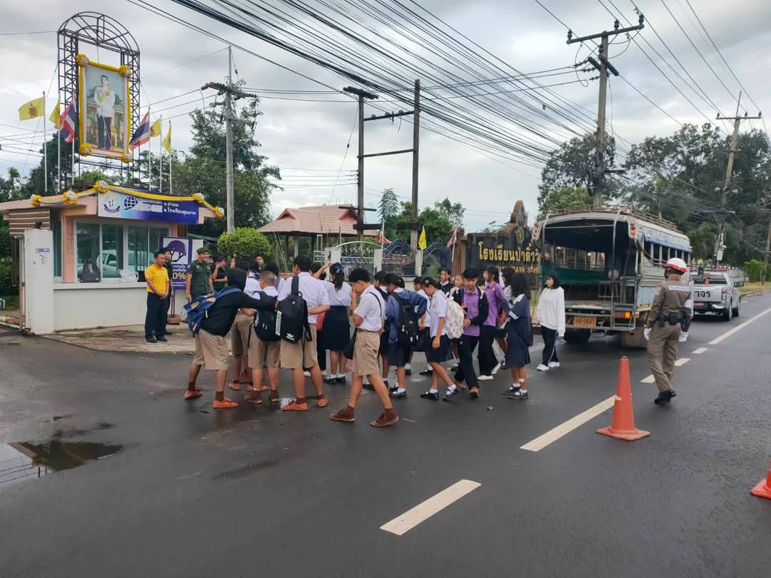 อำนวยความสะดวกจราจรบริเวณหน้าโรงเรียนป่าติ้ววิทยา